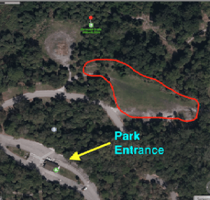 Attendees can bring their own gear or use gear brought by others. The main area of operation will be the field shown in the map below. Please note that the campground is closed, the boat ramp is under construction, and the adjacent parking lot might not be available. The parking area next to the Koreshan Historic Site compound is available.
